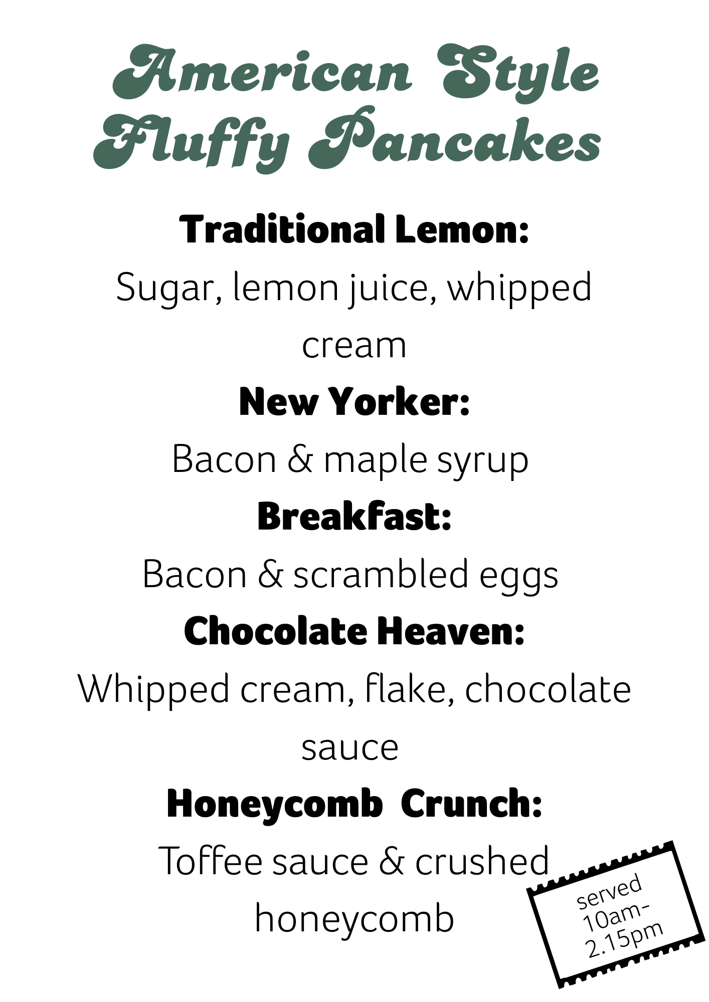 Breakfast themed options are available from 10-2:15